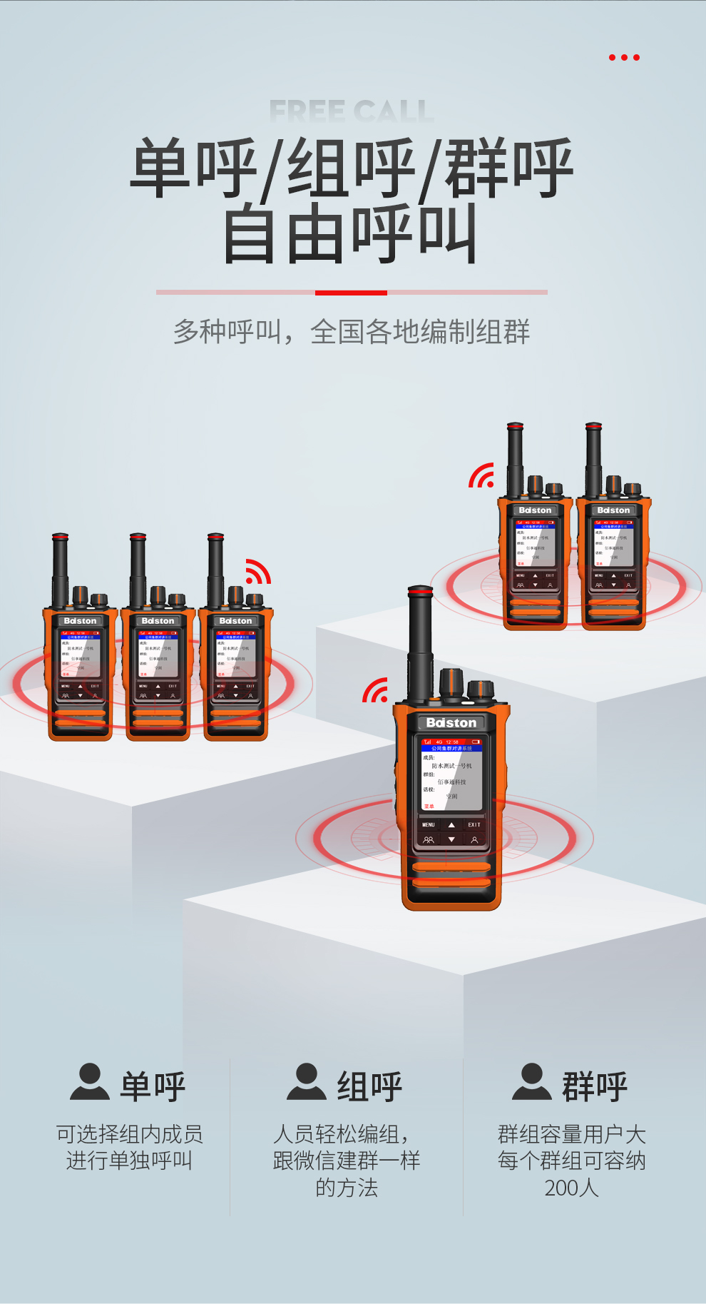 支持单呼、组呼、群呼