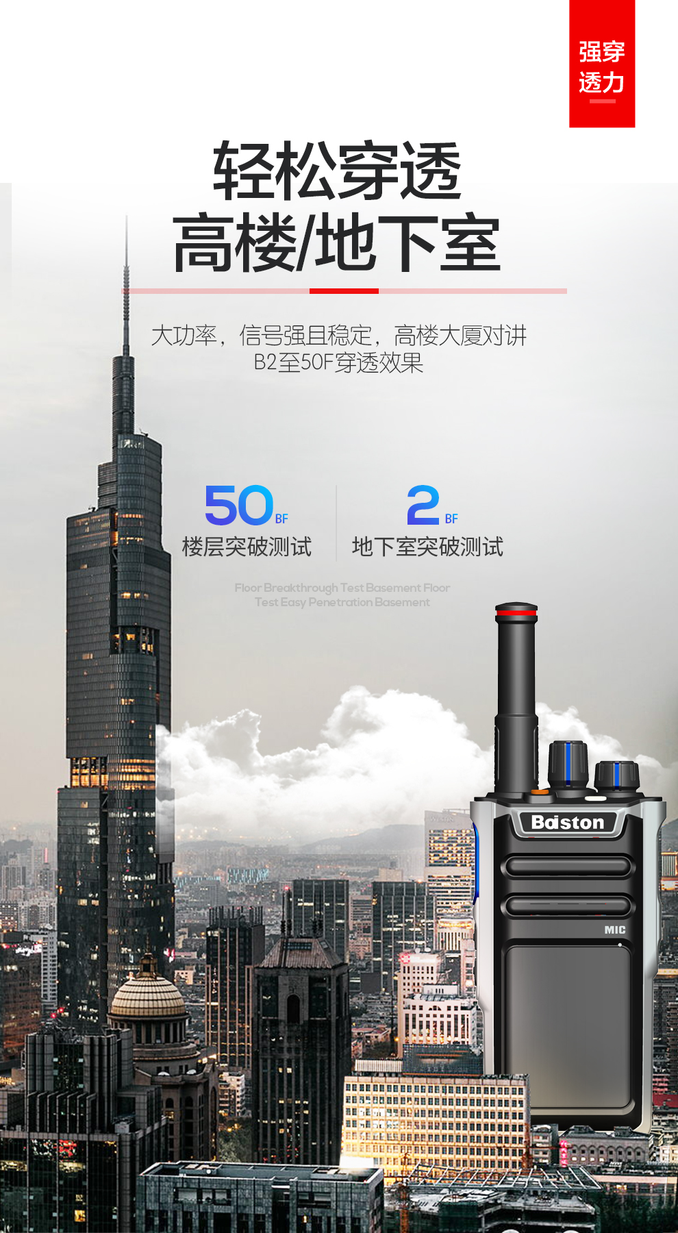 功率强劲,穿透力更强,通话距离更远