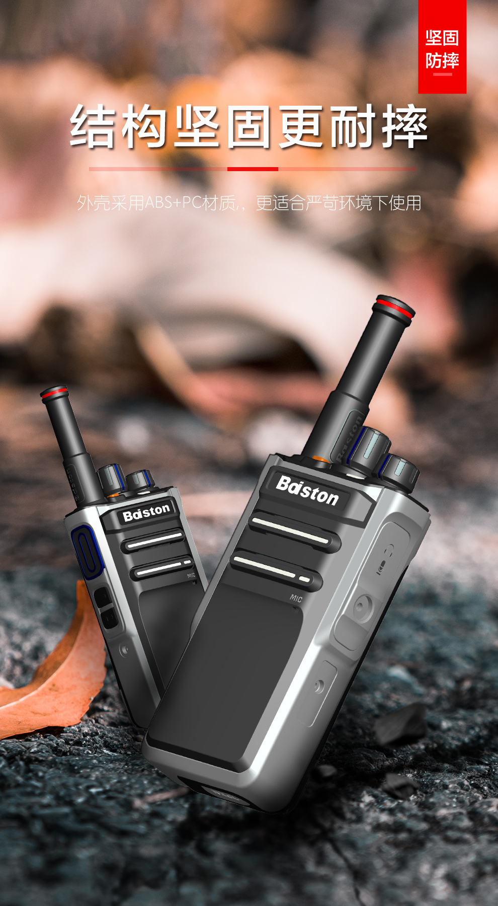 三防品质,结构更坚固 型号核准代码:2019FP0389 通过省级质量检测单位IP67防水防尘检测合格 采用36mm无磁喇叭,可防止金属颗粒物吸咐在喇叭上 配备2800mAh大容量锂电池 采用座式充电设...