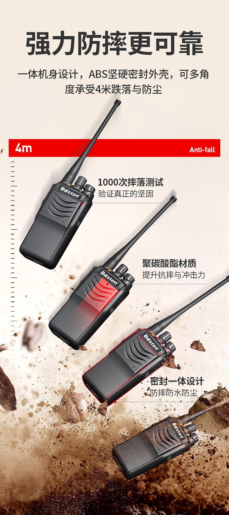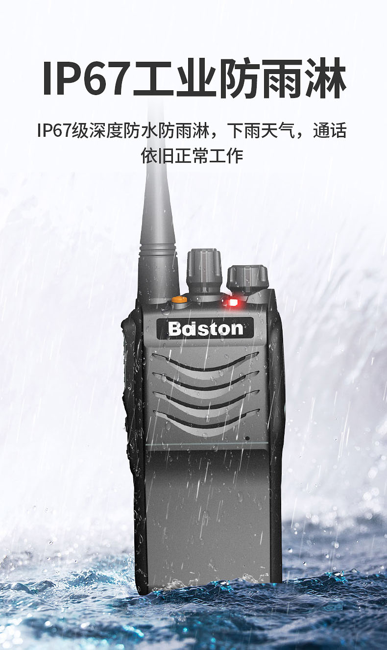三防品质,结构更坚固 型号核准代码:2019FP0389 通过省级质量检测单位IP67防水防尘检测合格 采用36mm无磁喇叭,可防止金属颗粒物吸咐在喇叭上 配备2800mAh大容量锂电池 采用座式充电设...
